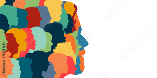 Menschen im Profil in vielen Farben als Solidarität Konzept