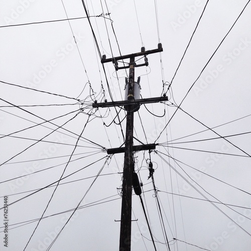 High voltage electrical transmission towers against a dramatic cloudy sky