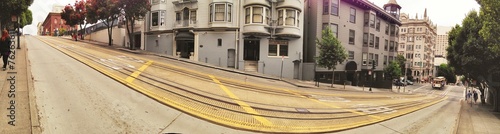 Charming old-fashioned Japanese street with traditional wooden houses and railway