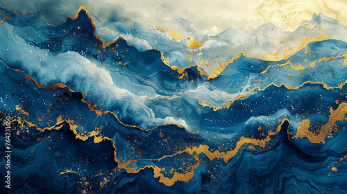 Abstract blue watercolor ocean waves with dynamic motion and splash