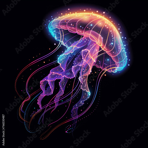 Vivid stylized illustration of a colorful jellyfish in an artistic environment
