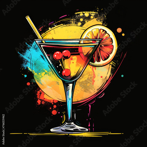 Colorful pop art retro cocktail illustration with vibrant splashes