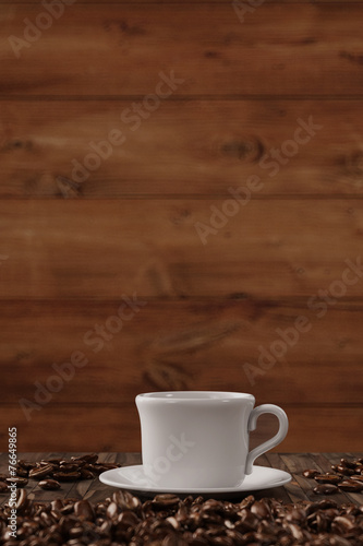 Tasse Kaffee mit Hintergrund aus Holz