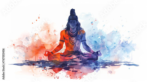 Colorful illustration of Lord Shiva in meditation for Maha Shivratri