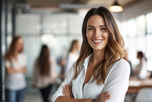 Portrait of a smiling Swedish environmental planner at work with a friendly demeanor