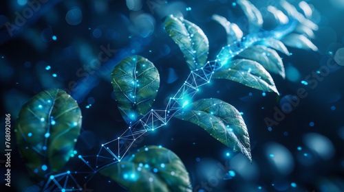 Futuristic plant sprout with digital biotechnology concept on abstract background