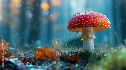 Psychedelic magic mushrooms in a fairy tale forest (Generative AI)