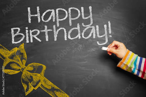 Hand writing Happy Birthday! on chalkboard