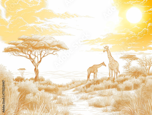 Kawaii giraffe black and white minimalist illustration for children's coloring book on white background
