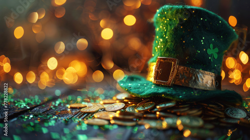 Festive St. Patrick's Day concept with a green leprechaun hat and gold coins