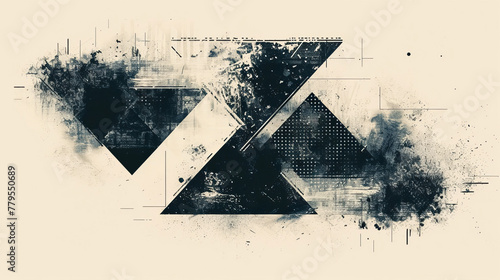 Abstract artistic grunge arrow. Black splatter painted isolated arrow on grey background.
