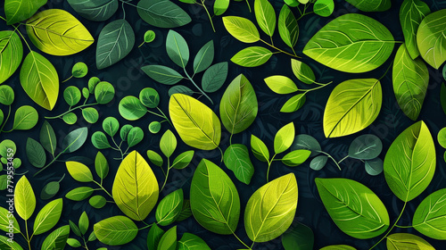 Seamless pattern of layered leaves with varying shapes and sizes