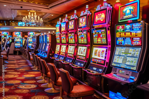 Vibrant casino floor with a variety of slot machines and glowing lights