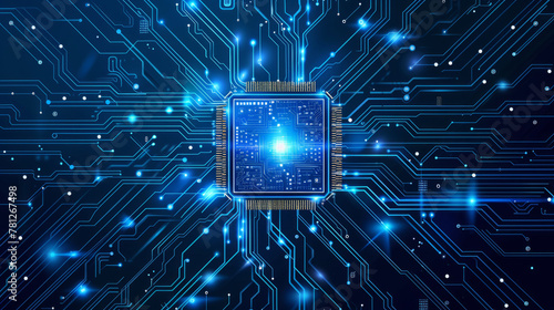 Futuristic AI processor chipset concept illustration with blue circuit patterns