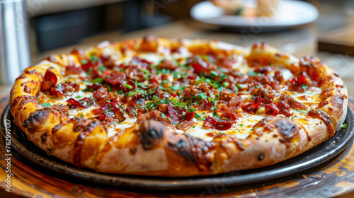 Fresh slices vegetarian pizza in italian pizzeria as illustration