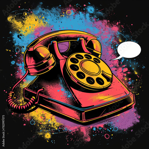 Retro pop art vintage telephone with colorful splatter on a dark background