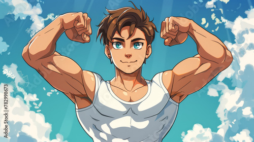 Fit male with a muscular upper body displaying strength and fitness against a blue background