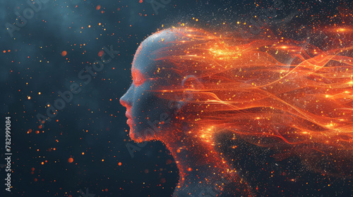 Human silhouette with glowing brain and neural networks in futuristic digital art