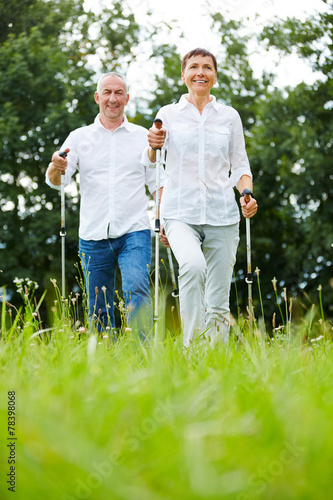 Glückliche Paare Senioren im Garten vom Seniorenheim