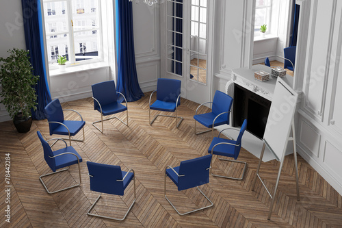 Heller Tagungsraum mit Stuhlkreis