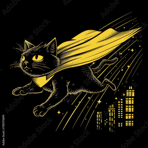 Colorful cartoon cat leaping joyfully over a vibrant rainbow in a starry scene