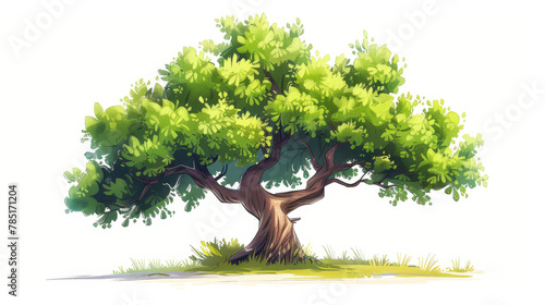 Vibrant cartoon illustration of a lush green tree with a sturdy brown trunk