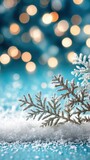 Silver Glitter Snowflake Decorations On Snow With Bokeh Lights On Blue Background For Winter Holiday And Christmas Season Designs And Projects