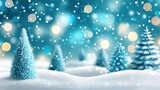 Snowy Christmas Trees Landscape With Bokeh Lights And Falling Snowflakes For Holiday Season Greetings And Winter Backgrounds