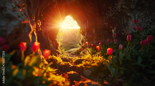 Magical flower arc in fantasy garden landscape (Generative AI)