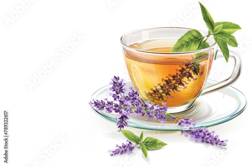 Aromatic chamomile tea in a delicate white cup surrounded by flowers