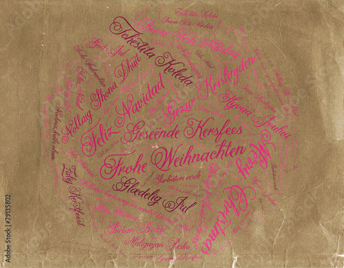 Grußkarte mit Weihnachtsgrüßen in vielen Sprachen