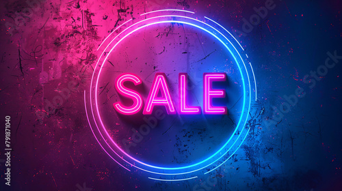 Glowing neon sale sign on colorful gradient background with artistic flair
