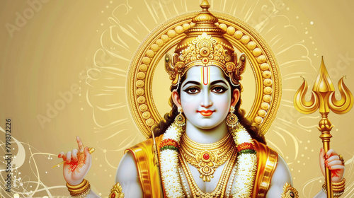 Vibrant illustration of Lord Rama with a bow, arrow, and trident during Shree Ram Navami