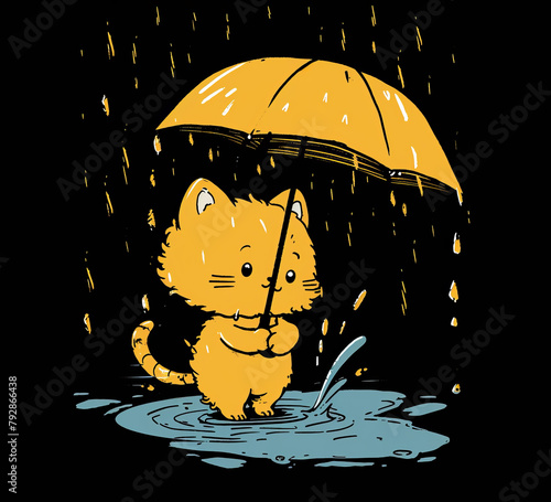 Adorable kawaii cat wizard casting a spell with a magic wand