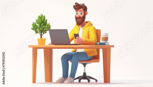 Casual work from home setup with a cheerful man using a laptop
