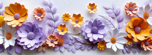 Beautiful 3D Paper Art of Colorful Flowers and Leaves on a White Background