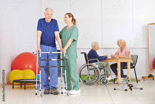 Gruppe Senioren bei Physiotherapie im Altenheim