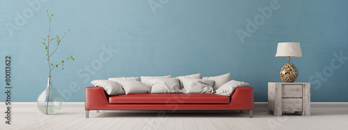 Panorama von Wohnzimmer mit Sofa vor Wand