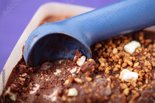 Eisportionierer in selbstgemachter Rocky Road Eiscreme mit Schokoladeneis