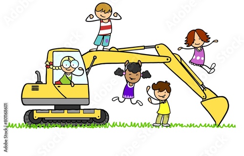 Gruppe Cartoon Kinder hängt an Trennlinie als Designelement
