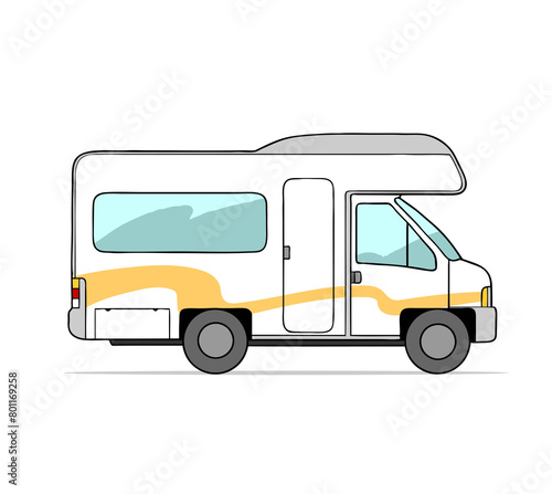 Colorful modern motorhome illustrated on a plain background ideal for travel and adventure.