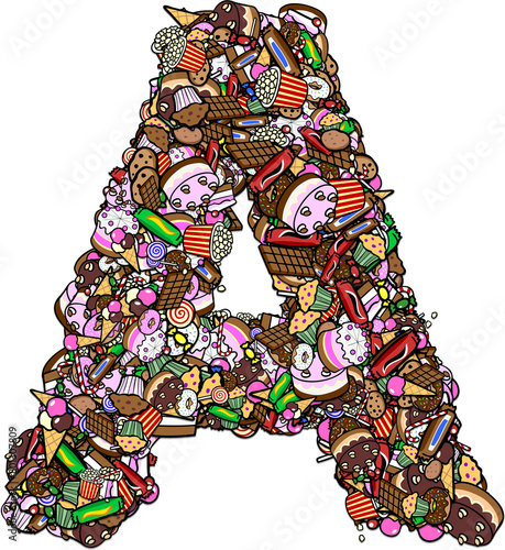 Buchstabe A zusammengesetzt aus vielen bunten Süßigkeiten
