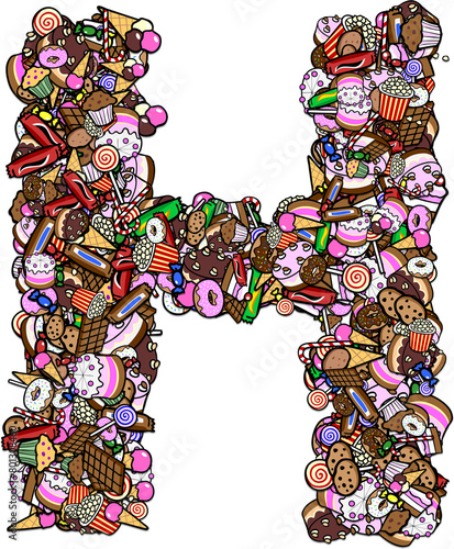 Buchstabe H zusammengesetzt aus vielen bunten Süßigkeiten