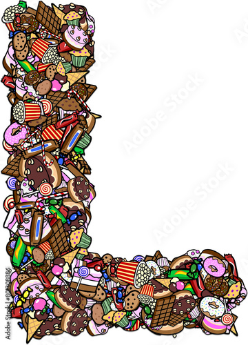 Buchstabe L zusammengesetzt aus vielen bunten Süßigkeiten