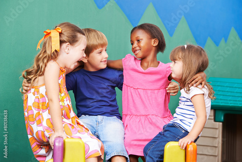Gruppe Kinder bei Umarmung im Kindergarten