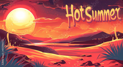 Vibrant illustration of a scorching desert landscape under a blazing sun