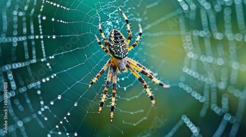 Close-up of a golden silk orb-weaver spider in its web at sunset
