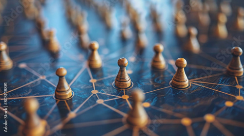 Strategic network of pawns on a chessboard conceptualizing business and human resources