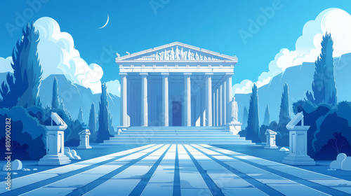 Moonlit Ancient Greek temple with statues vector illustration, serene classical architecture