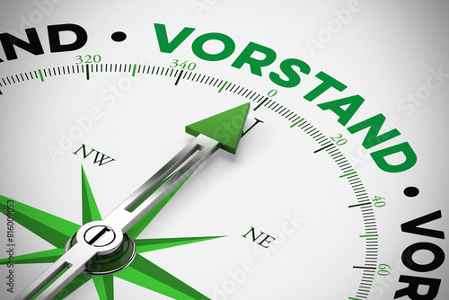 Kompass zeigt auf Schriftzug Vorstand als Business Konzept
